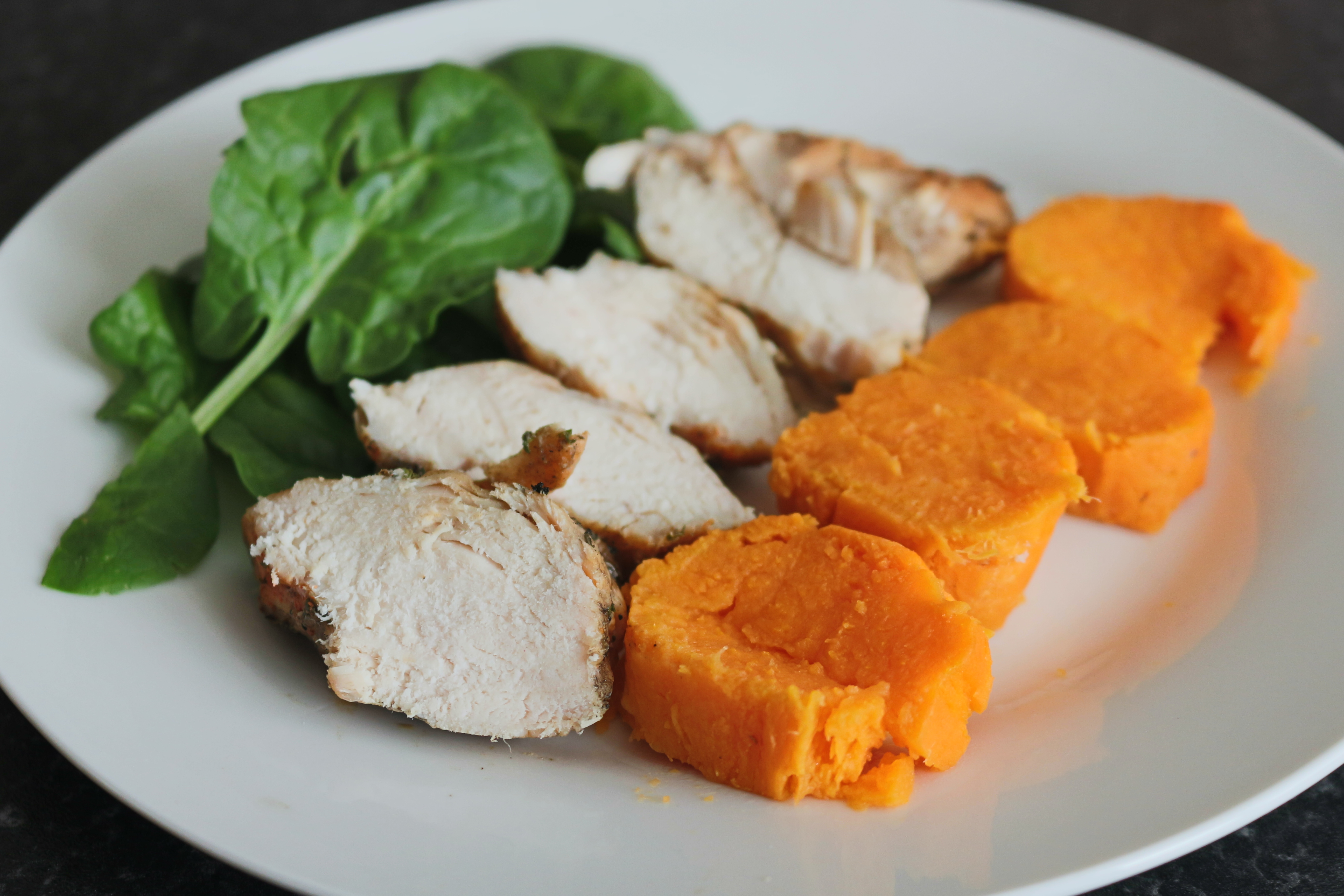 Frango + batata doce + espinafres