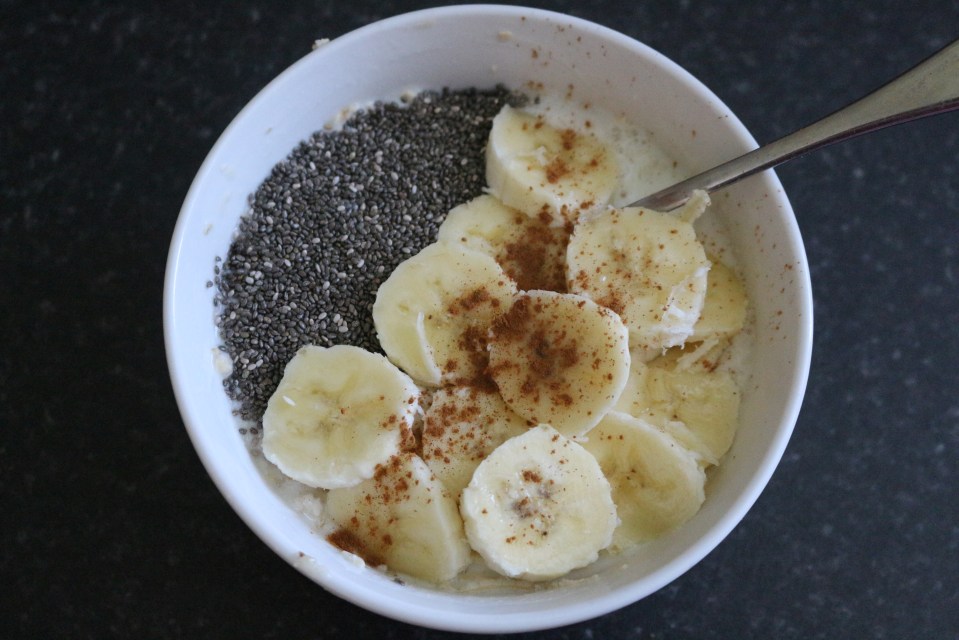 Flocos de aveia + banana + chia + canela