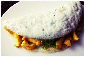 Base: Claras c Manjericão Recheio: Lentilhas esmagadas Nabiças Queijo Quark Alface Frango c Caril
